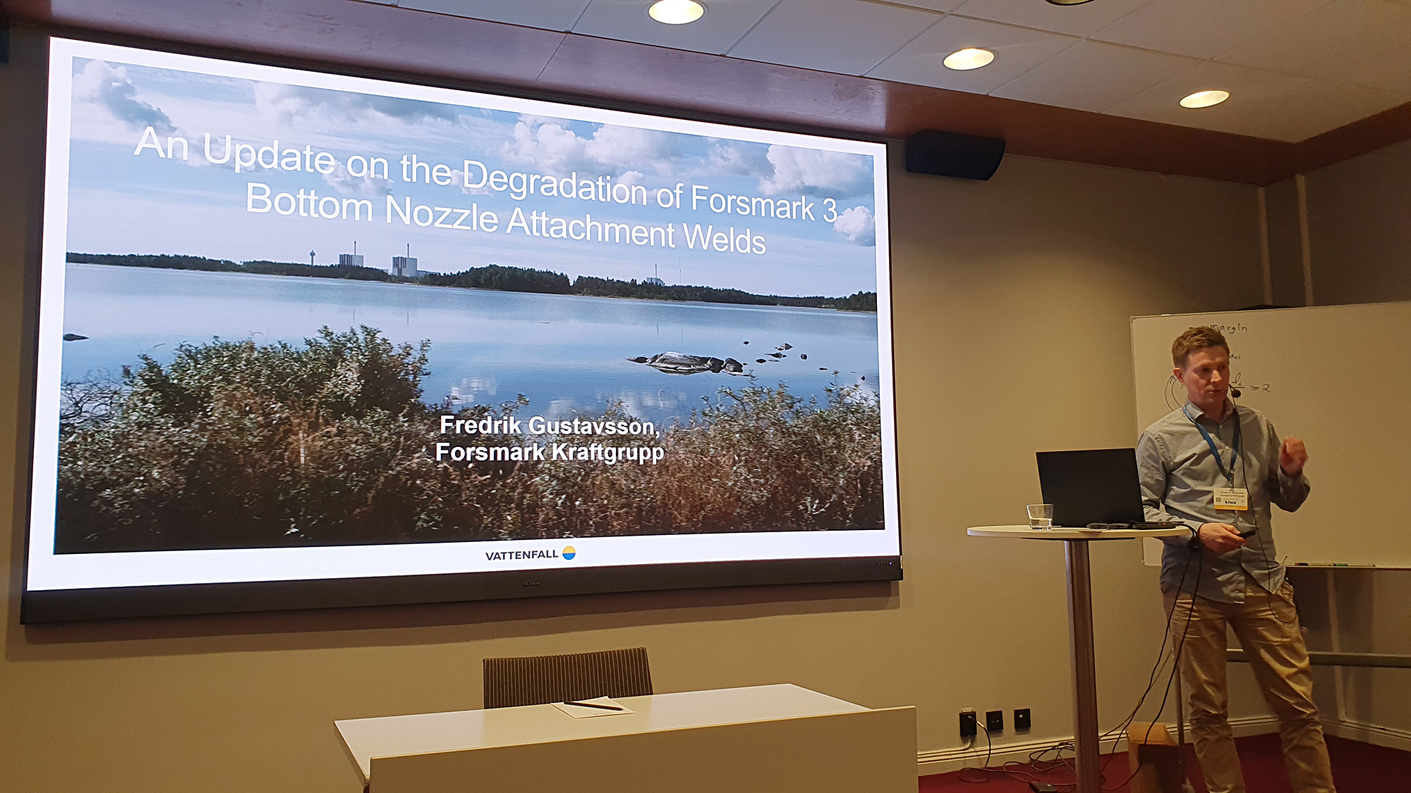 Ska man bara ta ett exempel får det bli problemen med korrosion i svetsarna i rörgenomföringar i Forsmarks reaktor 3. Tydligen nöter kylvattnet av cirka 0,1 millimeter av svetsarna närmast tankens botten varje år och något måste göras för att få stopp på det om kraftverket ska kunna fortsätta drivas. Fredrik Gustavssons från Forsmarks Kraftgrupp föredrag var intressant och mycket detaljerat och pekade bland annat på att de legeringar man använt i svetsarna i reaktorerna ett och två inte påverkats lika mycket, och vad det berodde på. Forskning pågår.