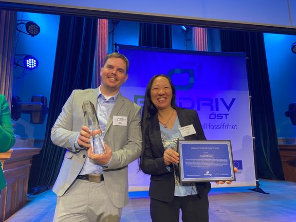 Erik Nordell och Anna Lövsén som precis tagit emot priset Foto: Tekniska verken